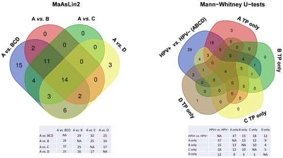 | HPV+ vs. HPV− A only | 5 | 281 | 12 | 326 |