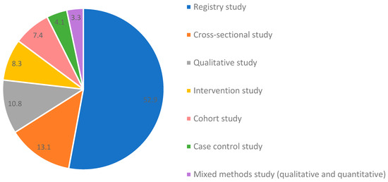 - Study designs: prospective intervention studies, randomized controlled trials (RCTs), observational cohort studies, case–control studies, cross-sectional studies, qualitative studies, registry studies, mixed-methods studies (qualitative and quantitative methods);