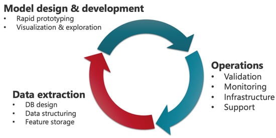 - Rajagopal, A.; Ayanian, S.; Ryu, A.J.; Qian, R.; Legler, S.R.; Peeler, E.A.; Issa, M.; Coons, T.J.; Kawamoto, K. Machine Learning Operations in Health Care: A Scoping Review. Mayo Clin. Proc. Digit. Health 2024, 2, 421–437. [Google Scholar] [CrossRef]