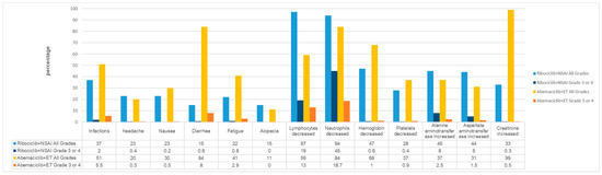 Overall, ribociclib and abemaciclib were tolerated and had manageable adverse events in early breast cancer. In separate clinical trials, 62.8% of the patients completed three years of ribociclib treatment and 69% completed two years of abemaciclib treatment. The incidence of adverse events for both drugs was collated from the information concerning the prescribing of the two drugs [93,94].