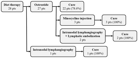 Figure 2 shows the treatment methods and therapeutic effects in lymphorrhea and chylorrhea cases.