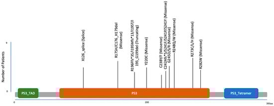 Mutation diagram of localization and frequency of splice, missense, and truncating tp53 mutations in a cohort of 429 metastatic PCa patients [].