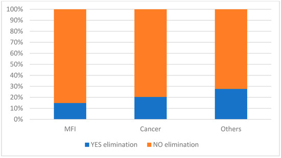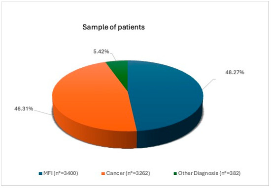 Figure 4). Patients with MFI are characterized by a significantly greater number of pick-ups (42.15%, 1433/3400) than patients with a diagnosis of cancer (8.55%, 279/3262) (