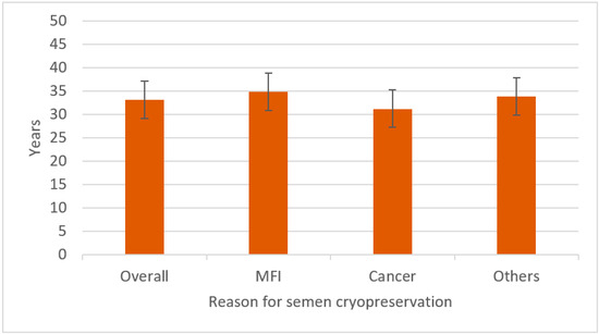Figure 2). Patients with MFI were older than those in the other two categories of patients at the time of the cryopreservation (
