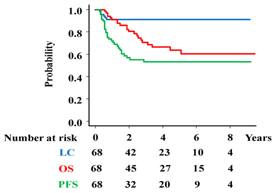 Multivariate analyses (Table 2) were performed to evaluate factors associated with LC, OS, and PFS.
