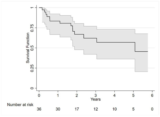 | Overall, N = 36 (100%) | Dead, N = 14 (39%) | Alive, N = 22 (61%) | p-Value | |