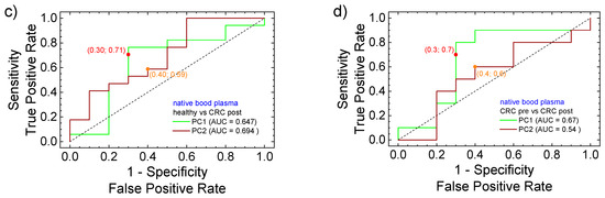 3.3. PCA Statistical Analysis and ROC Curves