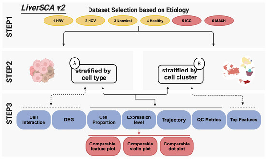 - Long, R.; Suoangbaji; Ng, I.O.L.; Ho, D.W.H. LiverSCA: A comprehensive and user-friendly cell atlas in human hepatocellular carcinoma. Comput. Struct. Biotechnol. J. 2024, 23, 2740–2745. [Google Scholar] [CrossRef] [PubMed]