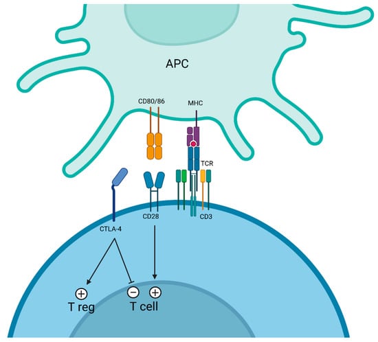 Cytotoxic T lymphocyte-associated protein 4 (CTLA-4) is a pivotal immune checkpoint [52] that plays a central role in regulating T cell activation and maintaining immune homeostasis [53]. It is expressed predominantly on activated T cells and regulatory T cells (Tregs) [54]. CTLA-4 competes with the co-stimulatory receptor CD28 for binding to B7 ligands (CD80 and CD86) on antigen-presenting cells (APC), thereby transmitting an inhibitory signal that limits T cell proliferation and cytokine production [55] (Figure 1). By dampening T cell responses, CTLA-4 prevents autoimmunity but also facilitates tumor immune evasion. Inhibiting CTLA-4 has been a groundbreaking strategy in cancer immunotherapy, aiming to unleash T cell-mediated antitumor immunity [54]. The first-in-class anti-CTLA-4 (aCTLA-4) [56] mAb, ipilimumab, demonstrated durable clinical benefits in melanoma, marking a paradigm shift in oncology and earning FDA approval in 2011. Subsequently, other CTLA-4 targeting agents, such as tremelimumab, have been developed and explored for use in diverse malignancies [57].