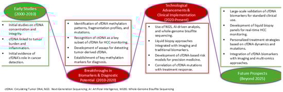 Over recent years, there has been a lot of interest in the research of cfDNA in HCC. The major advancements and anticipated developments in this field are visually presented in Figure 1.