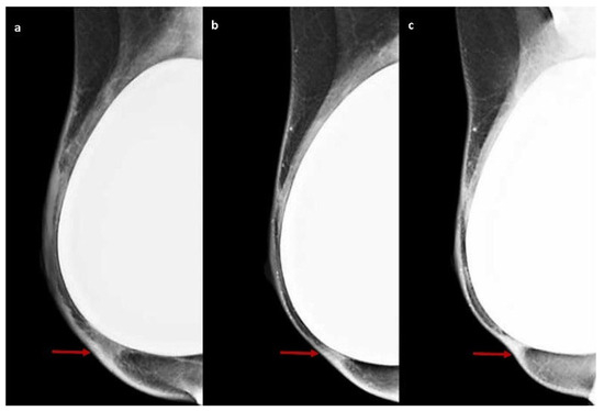 - Shah, A.T.; Jankharia, B.B. Imaging of common breast implants and implant-related complications: A pictorial essay. Indian J. Radiol. Imaging 2016, 26, 216–225. [Google Scholar] [CrossRef]
