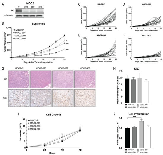 3.1. Development and In Vivo Growth of Axl KO MOC2 Cell Lines
