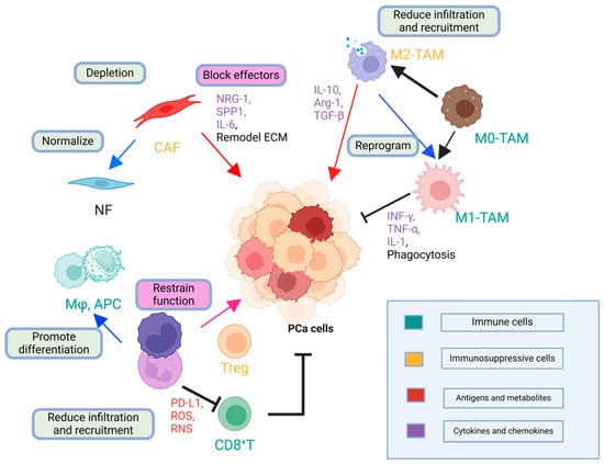 Major immunosuppressive cells and molecules in the prostate cancer TME.