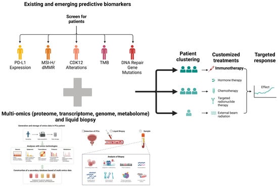 Advances in PSMA-based imaging, exemplified by PSMA-positron emission tomography, have revolutionized the detection of metastatic diseases. Beyond mere localization, these techniques might soon support “precision interventions” such as targeted radioligand therapy, which can be combined with immunotherapy for synergistic effects []. Other prostate-related antigens, such as PAP and STEAP1, are under investigation as vaccines or CAR T-cell targets, although robust evidence for their role in guiding patient stratification remains scarce []. Consequently, the field is gravitating toward multi-omics, a strategy that integrates information on tumor-specific antigens, immune cell infiltration, and genomic aberrations to construct biomarker panels reflecting both tumor biology and immune context [].