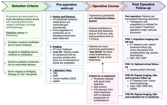 Histotripsy treatment protocol within our institution for colorectal cancer liver metastasis. Created in https://BioRender.com, accessed on 15 February 2025.