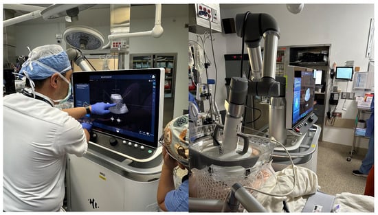 Histotripsy is performed using the HistoSonics Edison System (HistoSonics, Plymouth, MN, USA) under general anesthesia in an operating room setting (Figure 3). The Edison System used in our clinic is a non-invasive extracorporeal focused ultrasound device. It consists of a robotic arm-mounted transducer that allows for precise targeting of the lesion. The treatment is guided by real-time ultrasound imaging, which enables the physician to visualize cavitation bubble activity and dynamically monitor treatment progress. This ensures accurate energy delivery and allows for adjustments if necessary. The precise location and dimensions of the tumor are mapped with the HistoSonics system, and targeting algorithms in the system optimize the delivery of focused ultrasound to the defined tumor region.