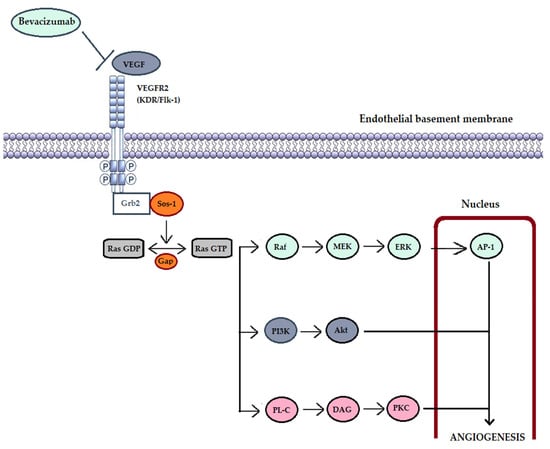 In the context of these previous studies, the postulates of Judah Folkman, who suggested for the first time in 1971, that tumor angiogenesis can be a potential therapeutic target [], were the logical conclusion and led to the orientation of cancer research, away from classical cell-centered therapies to therapeutic modalities aimed at inhibiting pathological angiogenesis. Thus, a new field of oncology was born [,,,,] and blocking the VEGF/VEGFR signaling pathway became the main target in the development of new therapeutic agents with antiangiogenic effect for solid tumors, among which Bevacizumab remains the oldest and the most iconic.