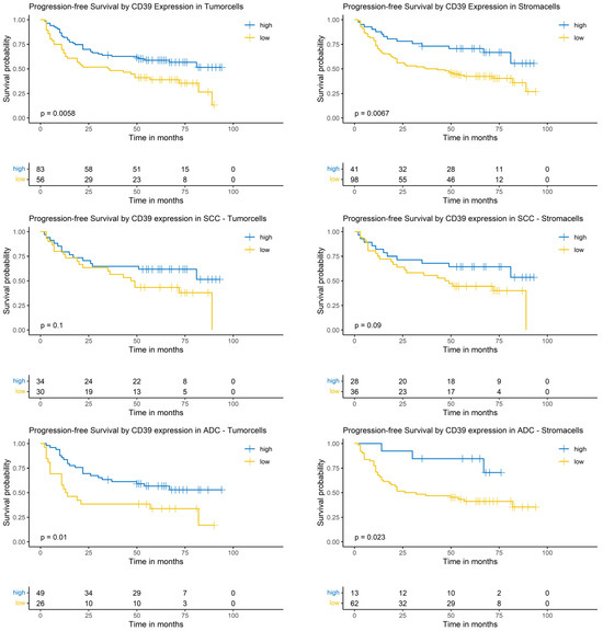 3.6. Logrank-Test of Progression-Free Survival and CD39 Expression