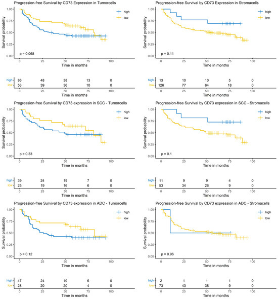 3.8. Logrank-Test of Progression-Free Survival and CD73 Expression