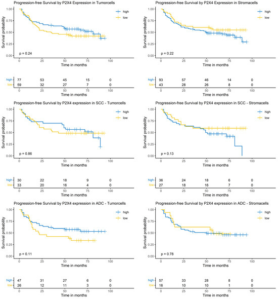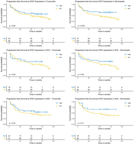 3.10. Logrank-Test of Progression-Free Survival and P2X7 Expression
