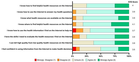 Figure 2), and it is unknown whether a population with lower eHEALS scores would have similar knowledge retention scores. Furthermore, only English-speaking patients were recruited, which may have impacted the study results. Although minimal differences in health data literacy have been identified between English-speaking and limited-English proficiency patients, there may be differences in confidence in the use of technology to answer health questions, as one study revealed that 68% of English speakers “agreed/strongly agreed” that they knew how to use the internet to answer their health questions, whereas only 47% of Spanish-speaking participants agreed [
