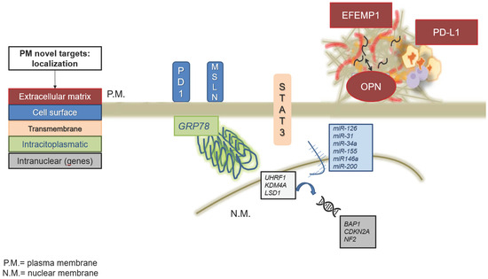 In this manuscript, we have focused on miR-126, miR-31, and miR-34a due to their pivotal roles in regulating critical pathways involved in the pathogenesis of PM, such as tumor angiogenesis, proliferation, invasion, and apoptosis resistance. Their therapeutic potential, as discussed above, is supported by experimental data showing their involvement in various mechanisms of mesothelioma progression and their modulation by either restoration (miR-126, miR-34a) or inhibition (miR-31). However, several other factors and miRNAs warrant attention as potential therapeutic targets for mesothelioma: