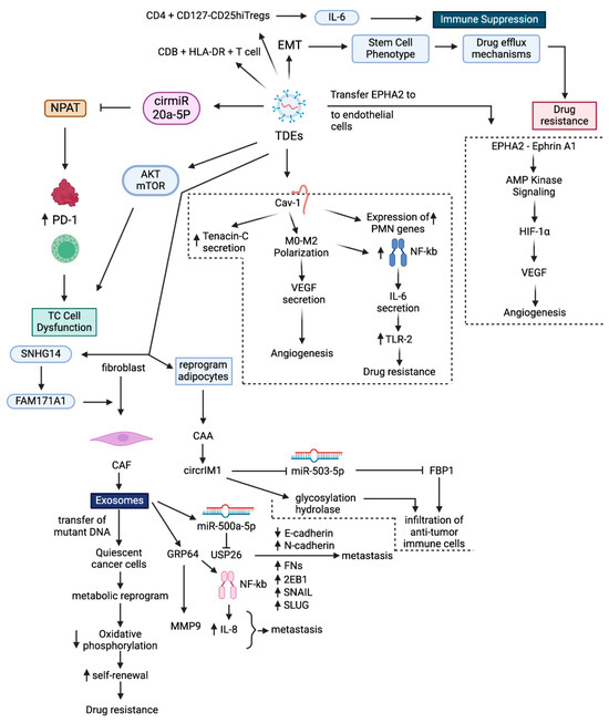 - Santos, P.; Almeida, F. Role of Exosomal miRNAs and the Tumor Microenvironment in Drug Resistance. Cells 2020, 9, 1450. [Google Scholar] [CrossRef] [PubMed]