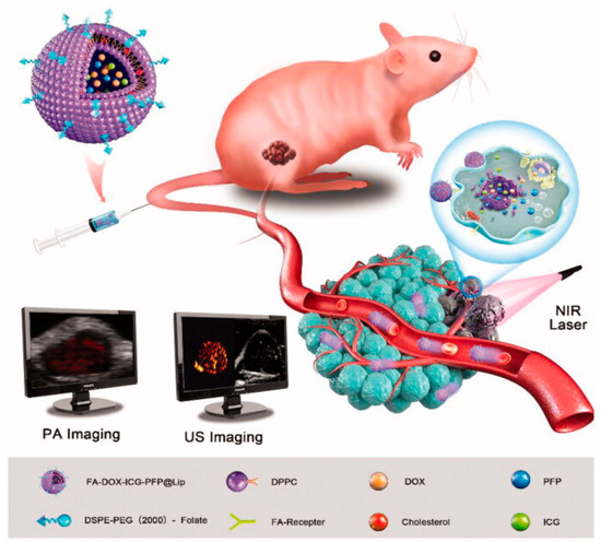 - Li, M.; Bian, X.; Chen, X.; Fan, N.; Zou, H.; Bao, Y.; Zhou, Y. Multifunctional Liposome for Photoacoustic/Ultrasound Imaging-Guided Chemo/Photothermal Retinoblastoma Therapy. Drug Deliv. 2022, 29, 519–533. [Google Scholar] [CrossRef]