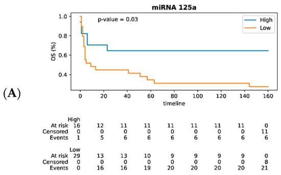 From the perspective of using miRNA-125a as a prognostic biomarker, meta-analysis of ten different types of cancer demonstrated that upregulated expression of miRNA-125a-5p is a marker of favorable prognosis []. In our study, we have confirmed this trend, having shown that the upregulated level of miRNA-125a expression is a favorable prognostic marker in DLBCL (p = 0.03).