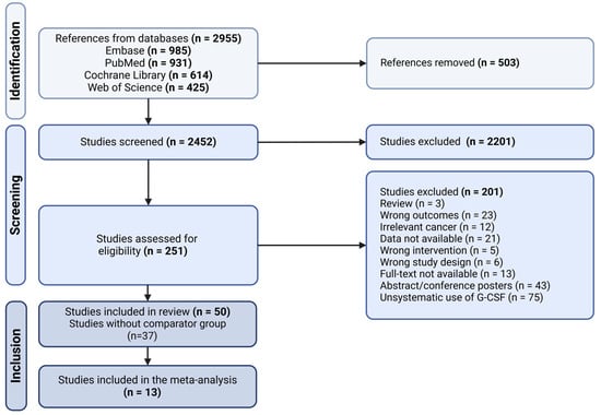 - Kuderer, N.M.; Dale, D.C.; Crawford, J.; Lyman, G.H. Impact of Primary Prophylaxis With Granulocyte Colony-Stimulating Factor on Febrile Neutropenia and Mortality in Adult Cancer Patients Receiving Chemotherapy: A Systematic Review. J. Clin. Oncol. 2007, 25, 3158–3167. [Google Scholar] [CrossRef]