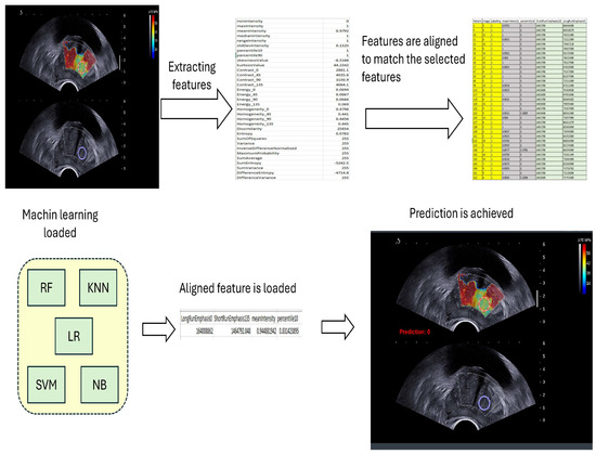 Once the features from the new data set were aligned with the training data, they were appropriately formatted for input into the trained model. These aligned features were then processed through the model to generate predictions. The trained model classified the new data into predefined categories, such as “normal” or “malignant”. Ultimately, the classification results were displayed, providing predicted labels for the new samples based on the trained model, Figure 5.