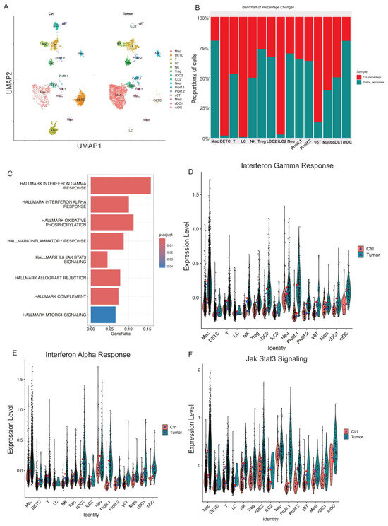 3.3. Skin Tumor Progression Reprogramed CD45+ Cell Transcriptomes Toward JAK/STAT Signaling or Interferon Responses