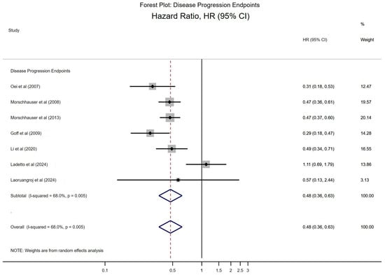 3.4.1. Forest Plot for Progression-Related Outcomes