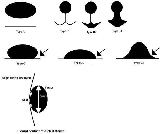 - Meng, Y.; Gao, J.; Wu, C.; Xie, M.; Ma, X.; Zang, X.; Song, J.; Zhou, M.; Guo, S.; Huang, Y.; et al. The prognosis of different types of pleural tags based on radiologic-pathologic comparison. BMC Cancer 2022, 22, 919. [Google Scholar] [CrossRef]
