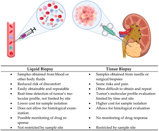 Comparison between liquid biopsy and tissue biopsy.