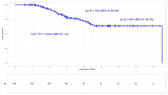 Local control (LC). The median LC was 51.1 months with 72% and 64% at 2 years and 3 years, respectively.