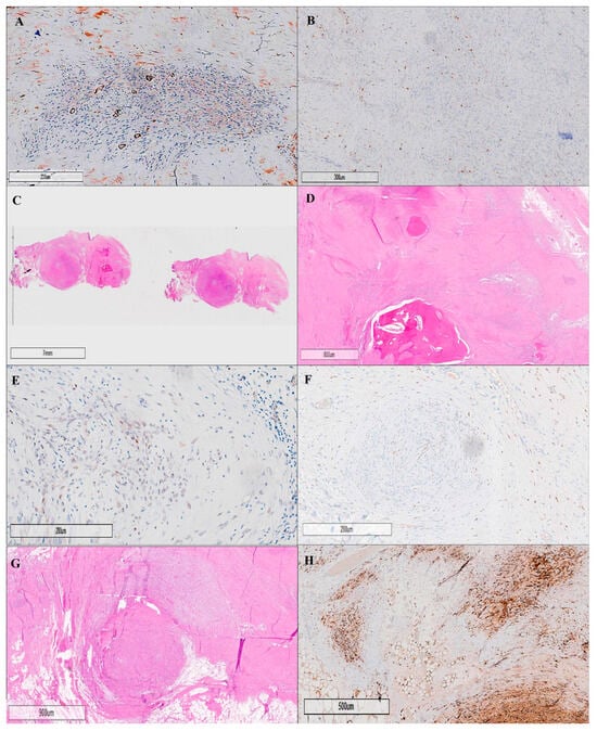 - Miettinen, M.; Finnell, V.; Fetsch, J.F. Ossifying fibromyxoid tumor of soft parts—A clinicopathologic and immunohistochemical study of 104 cases with long-term follow-up and a critical review of the literature. Am. J. Surg. Pathol. 2008, 32, 996–1005. [Google Scholar] [CrossRef]