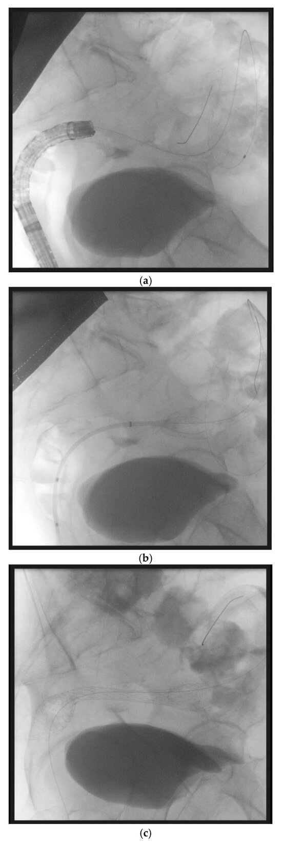 - Dumonceau, J.M.; Tringali, A.; Papanikolaou, I.S.; Blero, D.; Mangiavillano, B.; Schmidt, A.; Vanbiervliet, G.; Costamagna, G.; Devière, J.; García-Cano, J.; et al. Endoscopic biliary stenting: Indications, choice of stents, and results: European Society of Gastrointestinal Endoscopy (ESGE) Clinical Guideline—Updated October 2017. Endoscopy 2018, 50, 910–930. [Google Scholar]