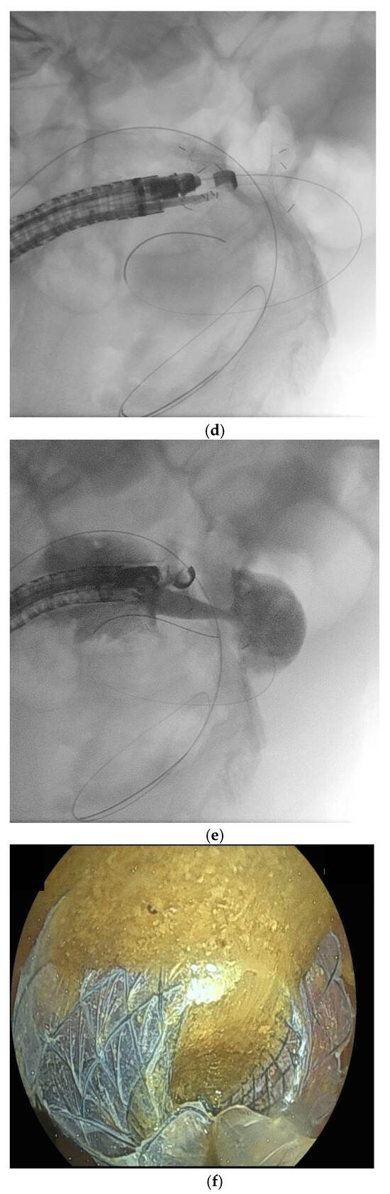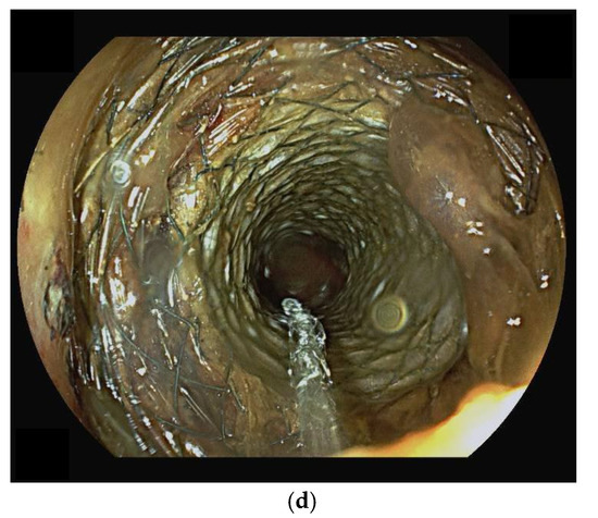 - Neri, B.; Stigliano, S.; Biasutto, D.; Citterio, N.; Lisotti, A.; Fusaroli, P.; Mangiavillano, B.; Donatelli, G.; Tonini, G.; Di Matteo, F.M. Endoscopic ultrasound-guided entero-colostomy with lumen-apposing metal stent as a rescue treatment for malignant intestinal occlusion: A multicenter study. Endoscopy 2025, 57, 77–82. [Google Scholar] [CrossRef]