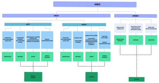 - McHugh, F.T.M.; Ryan, É.J.M.; Ryan, O.K.M.; Tan, J.; Boland, P.A.; Whelan, M.C.F.; Kelly, M.E.F.; McNamara, D.M.; Neary, P.C.F.; O’riordan, J.M.M.; et al. Management Strategies for Malignant Left-Sided Colonic Obstruction: A Systematic Review and Network Meta-analysis of Randomized Controlled Trials and Propensity Score Matching Studies. Dis. Colon Rectum 2024, 67, 878–894. [Google Scholar] [CrossRef]