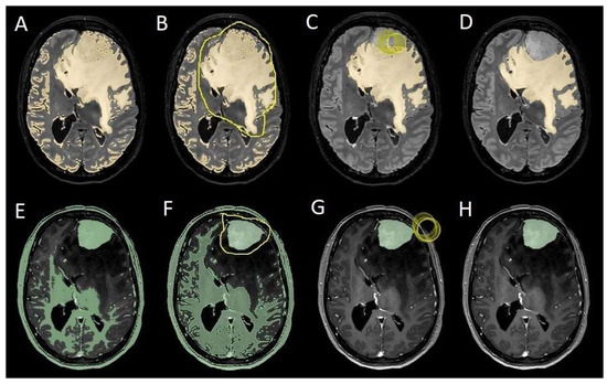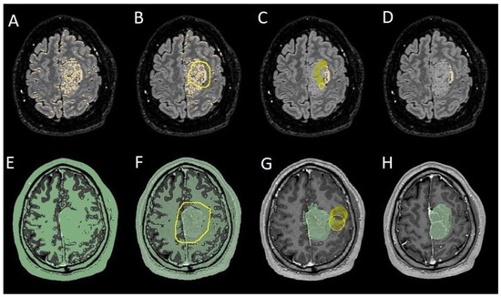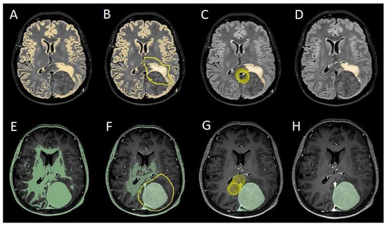 14]. Specifically for analysis, the sequences collected were T1-weighted with contrast enhancement to estimate tumor volume and conformation and FLAIR (fluid-attenuated inversion recovery) to quantify PE (