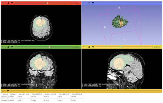 Figure 1). We manage the preoperative imaging in a DICOM (digital imaging and communications in medicine) format. The images from the T1-weighted sequences with contrast enhancement and FLAIR sequences in the DICOM format were processed through the Slicer website [
