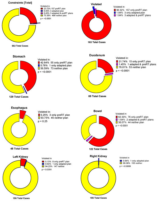 Frequency of constraint violations in total and for specific organs at risk.