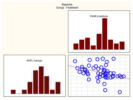 At the initial visit in the treatment group, Spearman test correlations were statistically significant between variables such as GCIPL Inferior Temporal and W-ratio. Additionally, GCIPL Superior Temporal, RNFL Average, RNFL Superior, RNFL Nasal, RNFL Inferior, and PhNR Amplitude also showed significant correlations, as presented in Table 6.