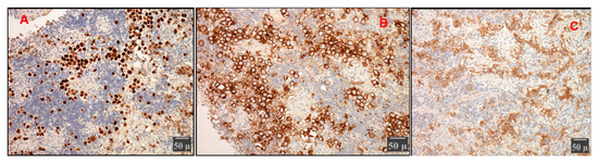 Telomerase is a transcriptase that identifies and elongates the telomeres (TTAGGG sequences) [71]. The TERT gene produces the functional enzymatic group of telomerases [71]. Telomerase activity ceases in non-neoplastic cell groups, and telomeres decrease in length throughout the consecutive cell cycles. In the end, upon a crucial telomere extent, cells start senescing. The vast majority of neoplasms encode this transcriptase [72] (Figure 10).