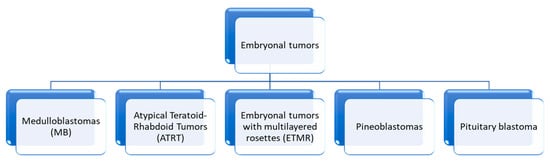 - Blessing, M.M.; Alexandrescu, S. Embryonal tumors of the central nervous system: An update. Surg. Pathol. Clin. 2020, 13, 235–247. [Google Scholar] [CrossRef]