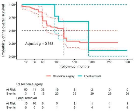 p = 0.007) and longer OS (144 months vs. 70 months;