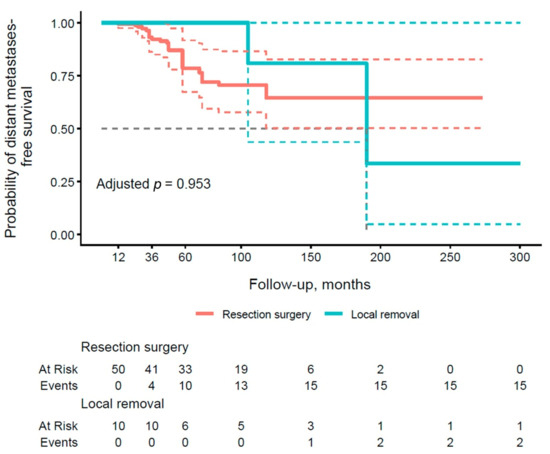 Conclusions: The prognosis following surgical resection of pancreatic RCC metastases is excellent: median OS is 77 months, and 5-year survival reaches 71.4%. In multivariate analysis, the type of surgical treatment is not significantly associated with OS or PFS. The choice of surgical procedure should depend on the preoperative CT results and the intraoperative assessment of the surrounding tissues.