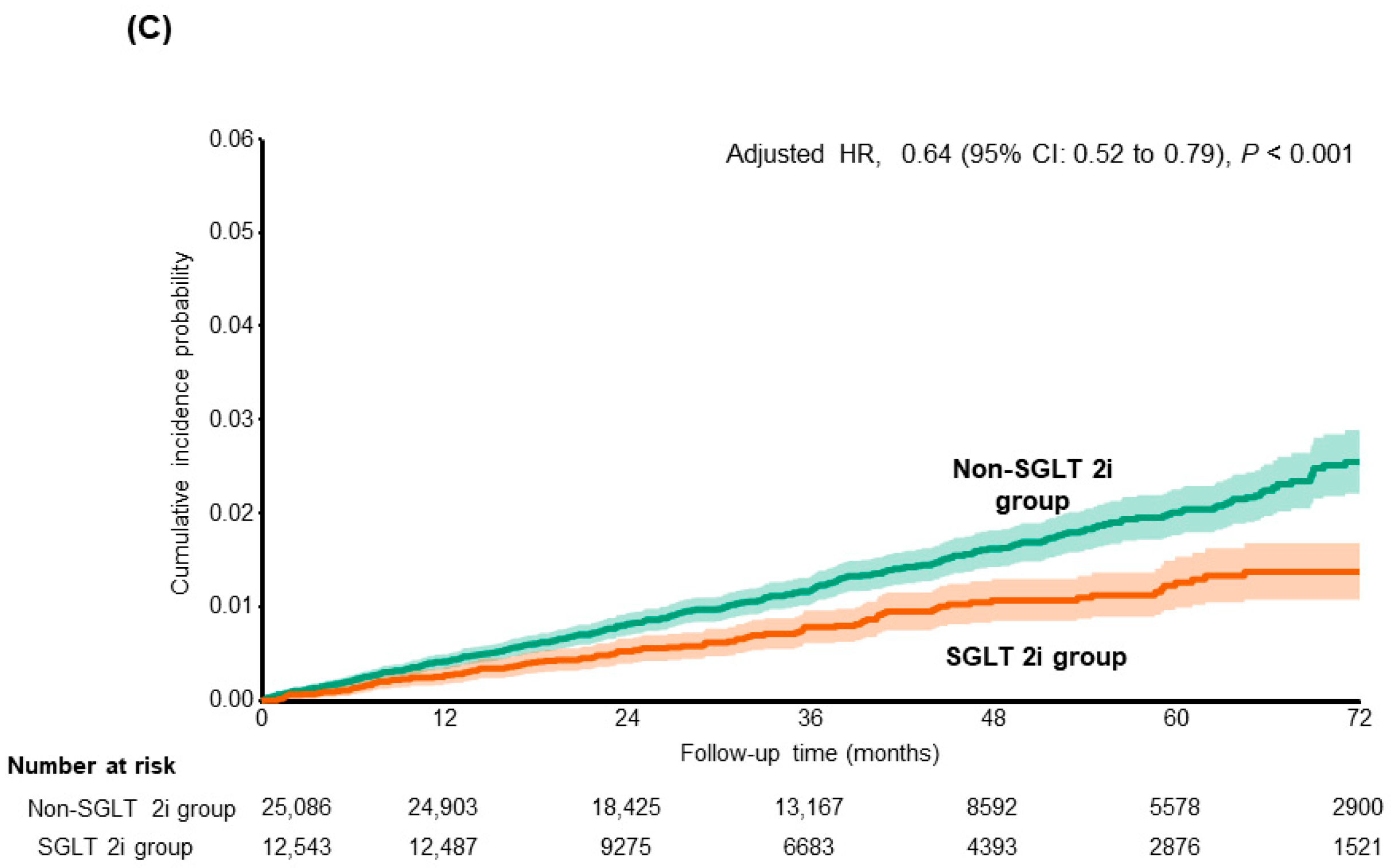 | SGLT 2i group (n = 12,543) | 291 (6.67) | 0.74 (0.65–0.85) | <0.001 |
