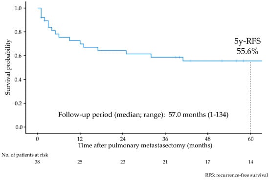 Recurrence-free survival of all patients after pulmonary metastasectomy.